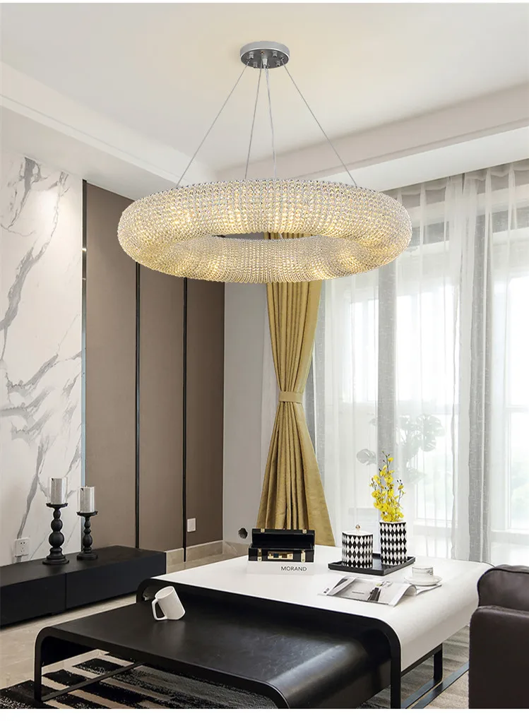 American Style Luxury Led E14 Pendant Lights Living Room Lustre Pendant Lamp K9 Crystal Suspend Lamp Decor Indoor Light Fixtures